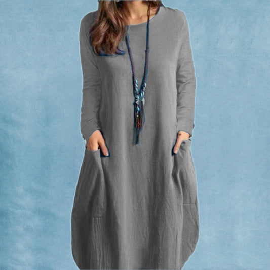 Y.Y. Denim Long Sleeve Dress With Tie Belt