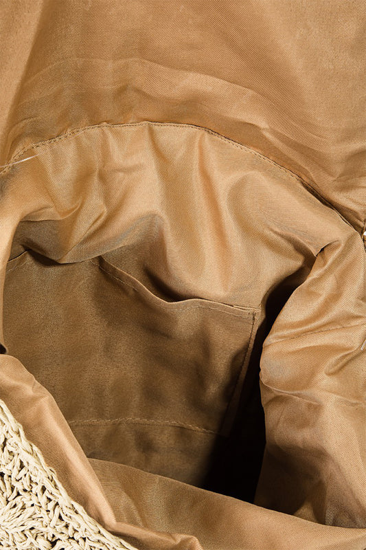 Fame Straw Braided Faux Leather Strap Backpack Bag